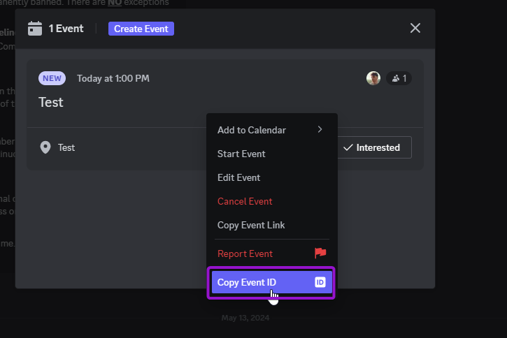 <figure><img src="https://1542229437-files.gitbook.io/~/files/v0/b/gitbook-x-prod.appspot.com/o/spaces%2Fu8TrWRyvdpP97AjvHh9W%2Fuploads%2Fgit-blob-731ed4f1763b2b220bc07805883af0fd471601e5%2FdiscordCopyEventID.png?alt=media" alt=""><figcaption></figcaption></figure>