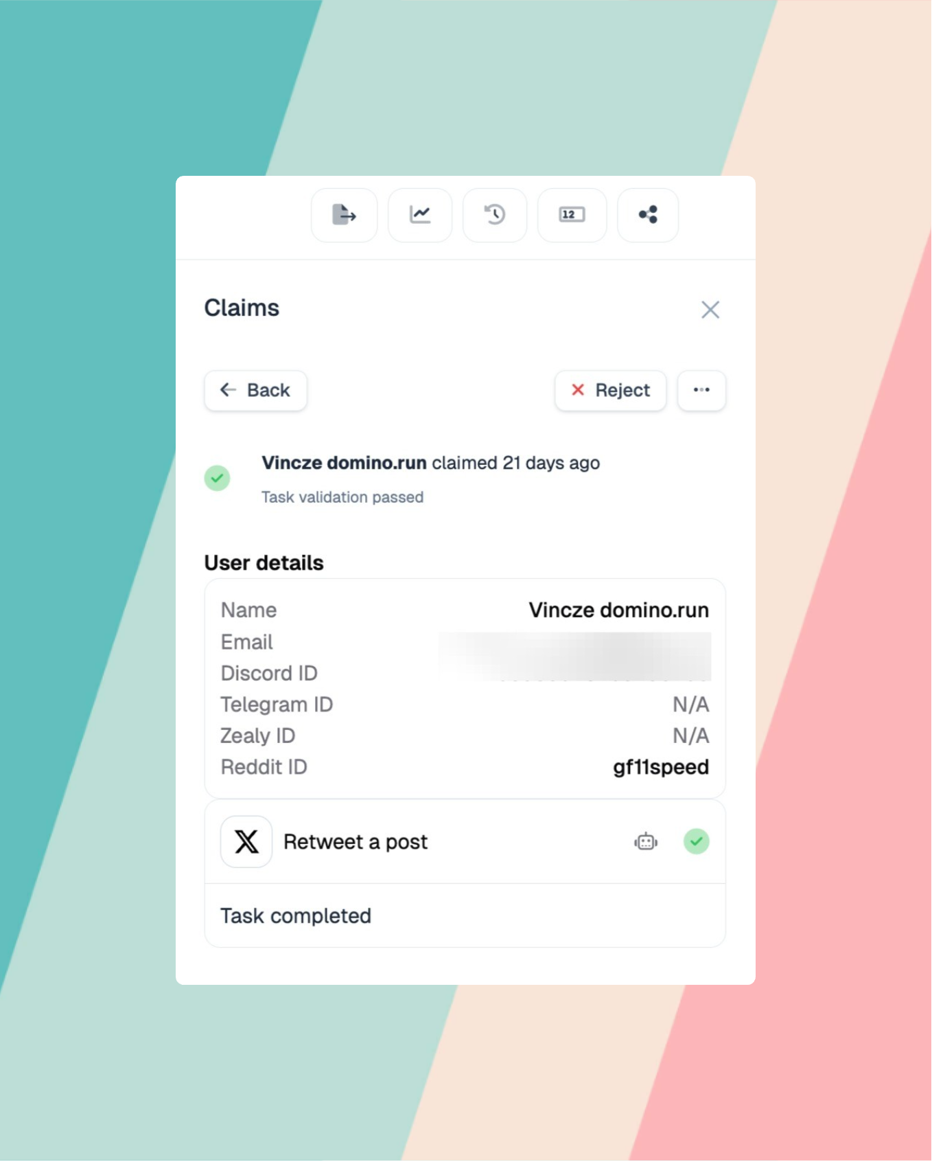 When reviewing quest claims, each task shows its verification status and provides access to the underlying automation that performed the validation.