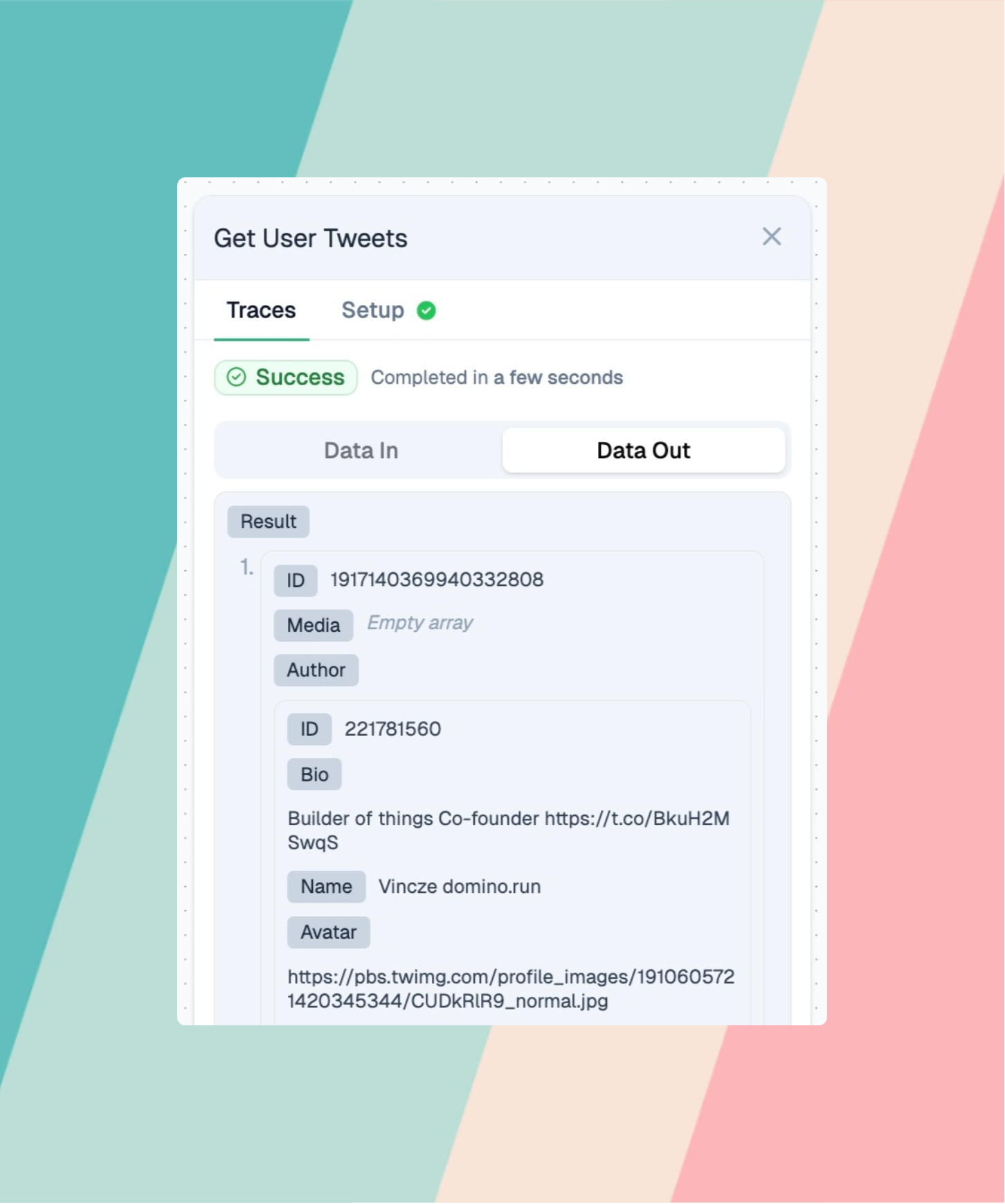 <figure><img src="https://1542229437-files.gitbook.io/~/files/v0/b/gitbook-x-prod.appspot.com/o/spaces%2Fu8TrWRyvdpP97AjvHh9W%2Fuploads%2Fgit-blob-8b79d5bc21169dcbb4a75668dfb7b9f3863a1cf8%2Fscreenshot%20(27).png?alt=media" alt=""><figcaption><p><em>The Traces tab shows detailed input and output data for each step execution</em></p></figcaption></figure>